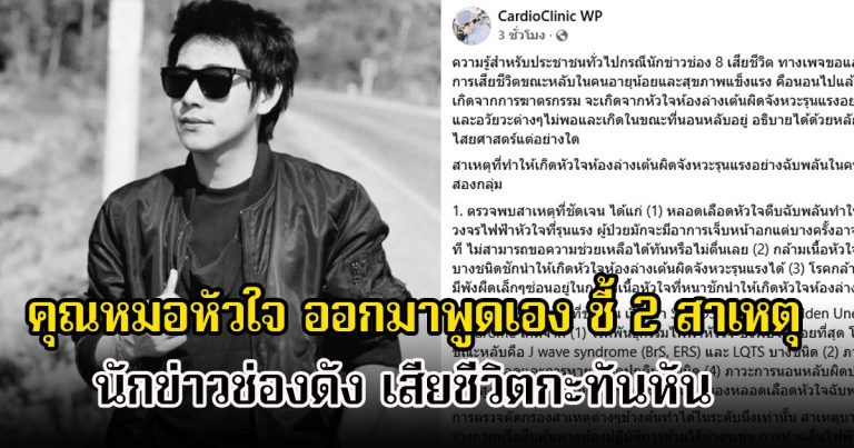 คุณหมอหัวใจ ออกมาพูดเอง ชี้ 2 สาเหตุ นักข่าวช่อง8 เสียชีวิตกะทันหัน