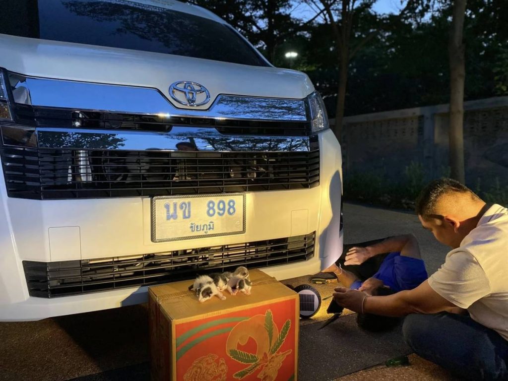 แม่แมวคลอดลูกใต้ท้องรถ “หลวงปู่จื่อ” พระเกจิ ส่องเลขทะเบียน