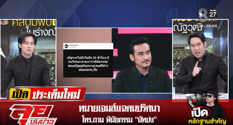 จากกรณีการเสียชีวิตอย่างเป็นปริศนาของ นายณัฐวุฒิ ปงลังกา หรือ นัทปง อายุ 35 ปี ผู้สื่อข่าวช่อง 8 หลังพบว่ามีสารไซยาไนด์ในร่างกาย ล่าสุดคุณพุทธ อภิวรรณ เเละ ไอซ์ สารวัตร ได้ออกมาเปิดประเด็นการเสียชีวิตของนัทปงอย่างต่อเนื่อง โดยมีบางช่วงบางตอนคุณพุทธได้พูดถึงคนที่โทรหาทนายเจมส์ว่า