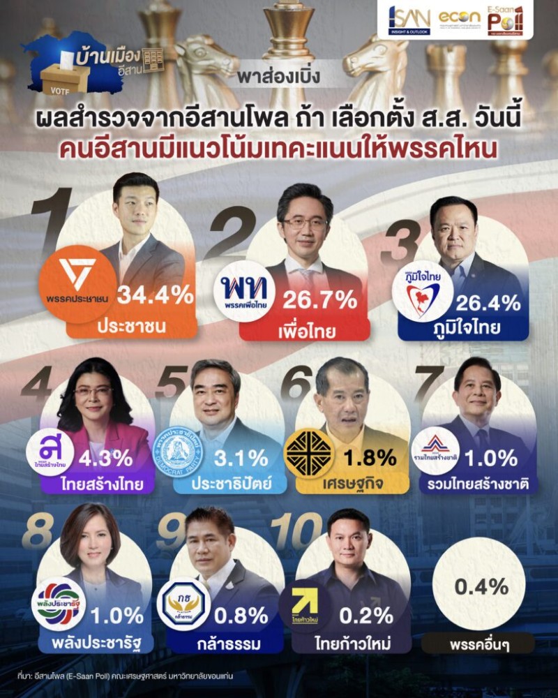 เปิดผลสำรวจ คนอีสาน เทใจให้พรรคการเมืองไหนมากที่สุด
