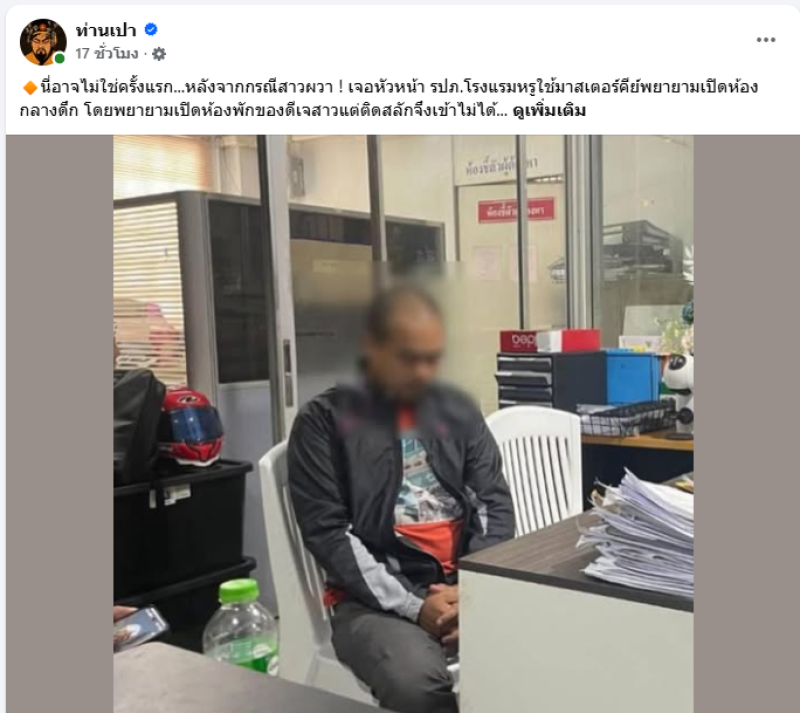 เหตุการณ์ดังกล่าวถูกเปิดเผยจากผู้ใช้เฟซบุ๊กรายหนึ่ง ซึ่งได้โพสต์เล่าประสบการณ์ระหว่างเข้าพักในโรงแรมแห่งหนึ่งในจังหวัดภูเก็ต โดยระบุว่า ขณะพักอยู่ภายในห้อง กลับมีบุคคลปริศนาใช้คีย์การ์ดเปิดประตูห้องพักเข้ามา สร้างความตกใจอย่างรุนแรง ต่อมาผู้เข้าพักได้แจ้งให้ทางโรงแรมตรวจสอบภาพจากกล้องวงจรปิด แต่ในเบื้องต้น โรงแรมชี้แจงว่าไม่พบข้อมูลว่ามีผู้ใดเปิดประตูห้องพักตามที่มีการร้องเรียน จนกระทั่งภายหลังหัวหน้าเจ้าหน้าที่รักษาความปลอดภัยของโรงแรมได้เดินทางเข้าพบพนักงานสอบสวน เพื่อให้ข้อมูลเกี่ยวกับเหตุการณ์ที่เกิดขึ้น