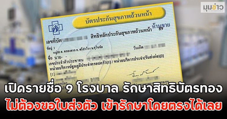 เปิดรายชื่อ 9 โรงบาล รักษาสิทธิบัตรทอง ไม่ต้องขอใบส่งตัว เข้ารักษาโดยตรงได้เลย