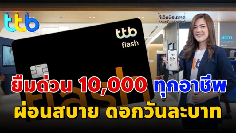 ทีเอ็มบีธนชาต “ทีทีบี แฟลช” ให้ยืมด่วน 10,000 บาท ดอกวันละบาท ทุกอาชีพ