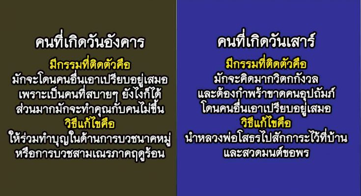 ‘วิบากก ร ร ม’ ของคนที่เกิดในแต่ละวัน และวิธีการแก้ไข